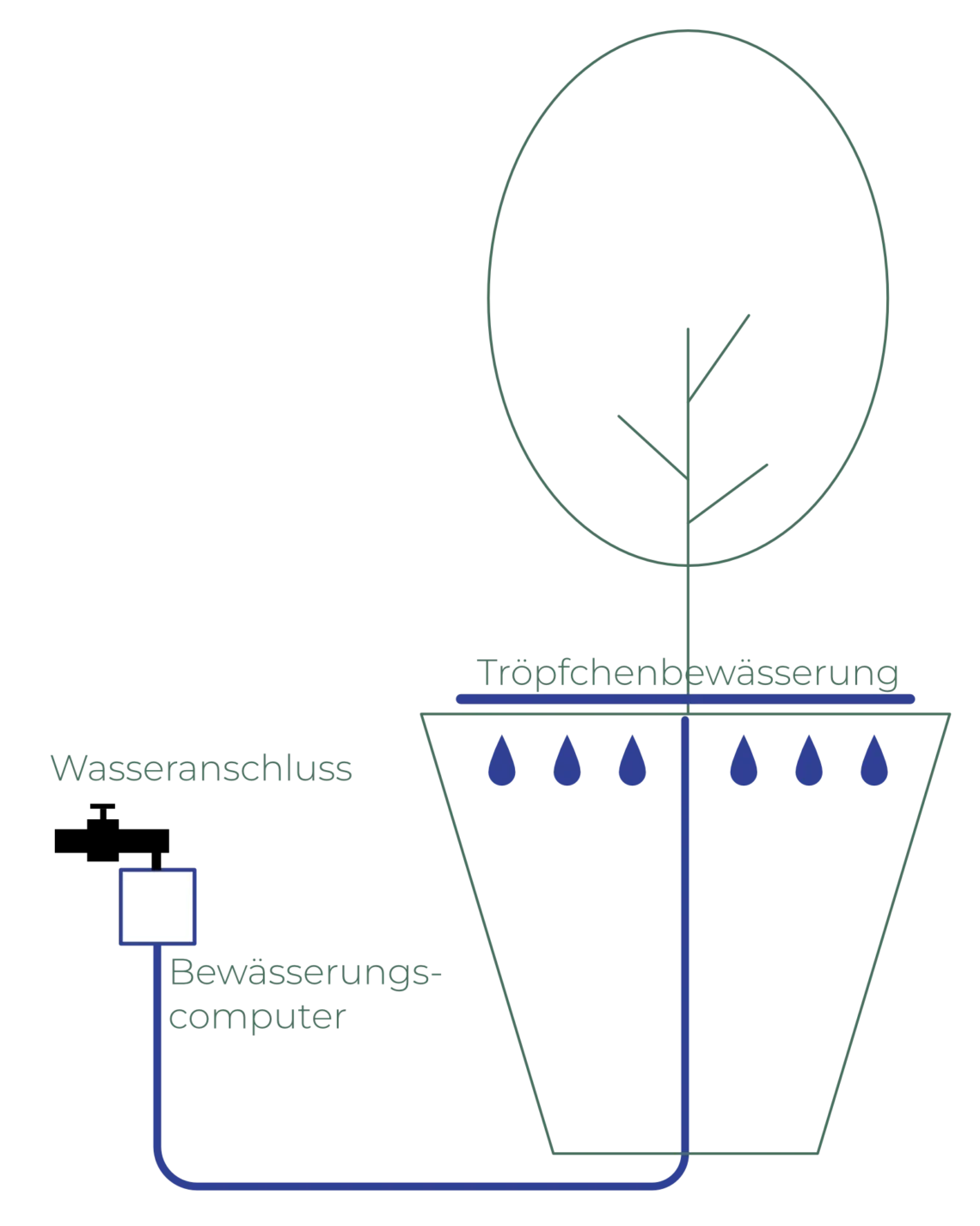 Smarte Bewässerungssysteme, einfach und bequem per App steuerbar. Unsere beiden Bewässerungssysteme sind zuverlässig und nahezu unsichtbar, da die Schläuche durch den Topfboden geführt werden. Ein Tropfschlauch verteilt das Wasser gleichmäßig im Topf und versorgt den gesamten Wurzelballen.
